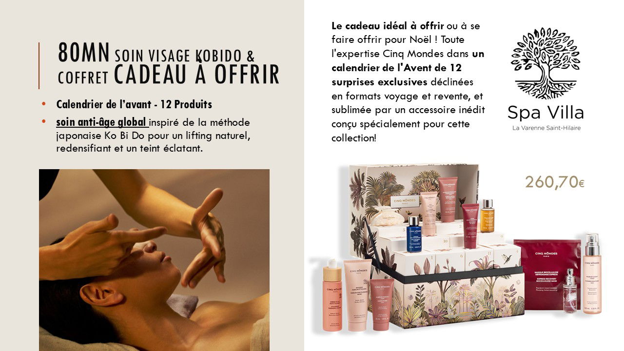 Toute l'expertise Cinq Mondes dans un calendrier de l'Avent de 12 surprises exclusives déclinées en formats voyage et revente, et sublimée par un accessoire inédit conçu spécialement pour cette collection des pharmacopées et d'un soin anti-âge global de 50mn inspiré de la méthode japonaise Ko Bi Do pour un lifting naturel, redensifiant et un teint éclatant.