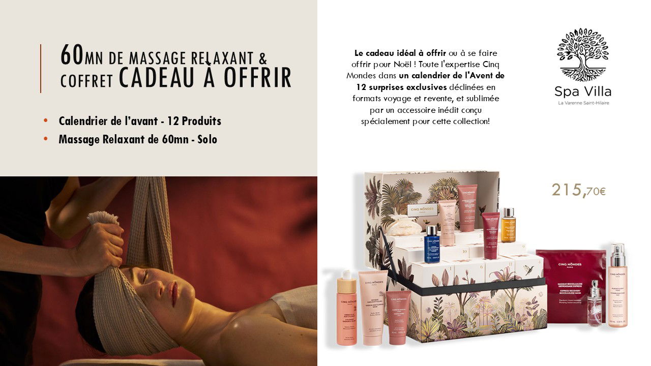 NOËL - Calendrier de l'Avant Cinq mondes & Massage Relaxant 1h30 - Solo